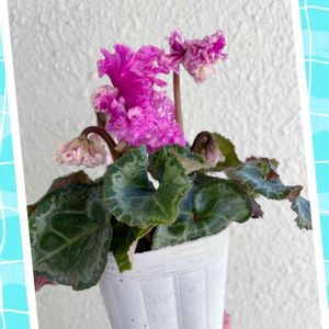 H Sでとても珍しい形をしたガーデニングシクラメン(ミニ)に出会いました。 花びらが縦長にフリフリしているんです。 一目惚れです💘 勿論、家に連れて帰って来ました。 2021.10.28