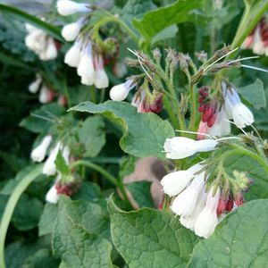 年々増えて幅をきかせてる ドワーフコンフリー✨ 可愛いけど大勢過ぎて 近くに植えた他の植物が乗っ取られちゃった(^-^; 赤っぽいのは蕾♪