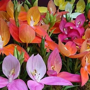 💠世界らん展2022💠 Disa(ディサ) ラン科ディサ属 原産国:アフリカ中部~南部 「山岳部の冷涼な気候、綺麗な雪解け水の流れるケープタウンの山々や、テーブルマウンテンに多く自生しています。 『神々の花』『テーブルマウンテンの誇り』と呼ばれています。 その中でも、朱赤色の大きな花の原種を軸とした育種がされています。 栽培が難しく、ほぼ目にすることが出来ない希少なランです。」~解説文より~ 花言葉は「あなたを愛します」 楽しくなるお花の色🧡💛🤍❣️ 花言葉にはキュンとするけど、このお花を送られることはまずないでしょう。 蕾がいっぱい💕
