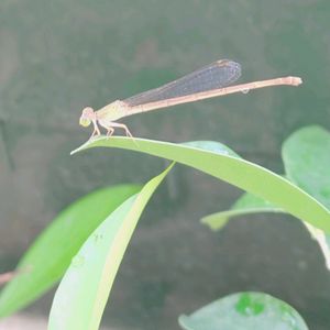 ガジュマルの葉っぱにイトトンボ☺️ いつもここいら界隈にいるのは赤色 この子は涼しげ~なお色😄💕🌱🎶