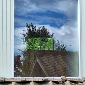 こんにちは✨😃❗ 久々の【今日の窓】です😊 これは昨日撮ったものですが😅 グッと場所を変えて撮りました😊 真ん中に写っている緑の木は手前の窓と同じ窓が向こう側に有って、実際に見える木です😊 手前の屋根や緑や上に見える木と空は手前の窓に写っているものです😂 空が綺麗でした😆✌️ 🏷️つよしの雲仲間に参加します😊