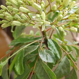 カレーリーフにお花らしきものが咲きそうです。 今年の春に枯れかけの状態で投げ売りされてたカレーリーフがまさかお花をつけるほどまで元気を取り戻してくれるなんて。感無量です。