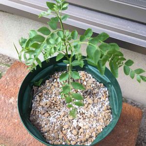 カレーリーフのひこばえを生み続けている母艦がこの苗です。 6月の投稿からここまでに育ちましたが、ひこばえの乱発は母艦に問題がある場合があるそうです。 何が気に入らないのか分かりませんが元気だしカレーにも使えたので良しとします😄