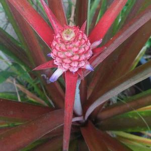先日の観賞用パインの続報です。蕾が開き始め、筒状の花が咲き始めました。 いつだったか人工受粉の方法をどこかのサイトで見たのですが、これってどうやればよかったのでしょう?