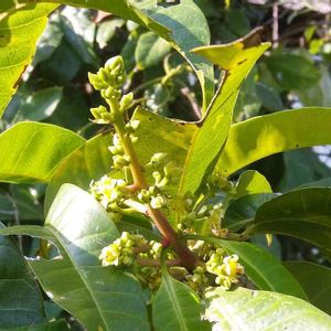 出た!マンゴーのケント種に蕾がちんまり。普通マンゴーの蕾はブドウみたいに花が房状になるのですが...完全な花芽になれなかった物が一部のみ初蕾となった様です。 こんなのじゃ果実は期待出来ませんが、来年の目処は立ちそうです。