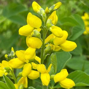 【先代萩】《マメ科》 花言葉 「知性」「信念」 茎先に総状花序(柄のある花が花茎に均等につく)を出し、黄色い大きな蝶形の花をつける。 和名の由来は、仙台に分布することと 歌舞伎の「先代萩」にかけてつけられたものである。 🏷月曜日にビタミンカラーに参加します🧡💛。 2022.4.24