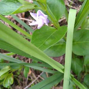 2022/05/09 雑草山のツルニチニチソウ 裸眼で見たら 白花? ウスーク紫です。