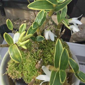 放りっぱなしのセッコクです♬ 開いている花もあるのですが、みな下を向いて花の形がわかりません😭 上の方を向いている蕾があると思うのですが、咲いてくれませんか? 金曜日の蕾たちに参加します😊 セッコクのことはまるでわからないのですが、葉や蕾がついていないバルブは切っていいですか? 10年以上植え替えしていませんが、植え替えした方が良いですか?