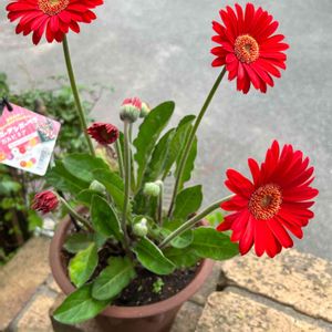 おはようございます😊PEKO地方.ゴールデンウィーク 1日目どんより曇り☁️ 去年お迎えしたガーベラ.カルビネア❤️お迎えした時より花芽がいっぱい❤️嬉しいな❤️❤️❤️