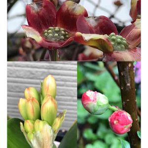🏷蕾組の子 宜しくね♪ 庭のハナミズキ開き始めましたよ クンシランも順調です ボケの蕾が出来ました😊
