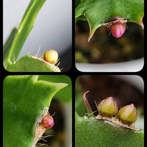 ①シャコバサボテン 1mmほどの蕾が見えてきました ②ヒメツルソバ かわいい花が増えてきました