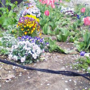 三枚目 こちらの花壇にはチューリップ、🌷パンジー、あとはー?菜の花左側 スマホ故障中タブレット旧バージョンな為 コメント欄受け付けしない が在りません。😭 コメントを受け付け扉を閉めさせて下さいね。