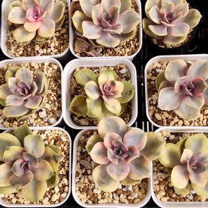 昨日は思ったほど気温も上がらず晴れ間も少なかったけど、 今日はどうだろう🤔 ↗️アトロフスカの新葉が透き通っててキレイ✨✨✨💕 ➡️ちょっと見ないうちに急激に大きくなっていたウエストレインボーの子株🥰 ↘️爪の色が毒々しくてカッコ良くなってるタウラス 今年の夏も無事超えてくれますように🙏 ↙️もうすぐ2歳だというのにまだこのサイズの自分交配実生ハオちゃん💦 でも、ゆっくり大きくなって来てるのが可愛い😍 ⬅️ようやくガッチリ土を掴んで根っこを張ってくれたエボニー 強く大きく育ってくれますように❤️ ↖️葉元がうっすらピンクのルビーパステル 一年中黄色っぽいカラーで寄せ植えに入れても可愛くて、よく増える優秀な子😊