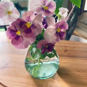 まだまだ頑張ってるパンジーが惜しくて。 北浜蚤の市で買ったお気に入りの花瓶に飾ってみました。