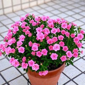 植え付け後2週間以上経過。 急に沢山咲いてきました🩷 咲きたては、キレイな色だなぁ。 スーパーベルは今年の庭の、ラブリー担当です😍