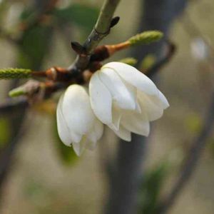 すぐそばでは小さなモクレンの仲間。 こちらは真っ白です。