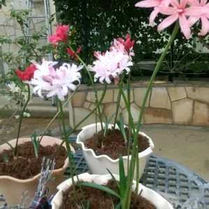 ①植物園の温室🏠️で大事にされてました。 ②道端の赤いダイヤモンド♦️✨(一昨年11/10) 実は今月初め 同じ場所に ピンクのネリネが咲いてたのですが(11/1投稿)……まさか色変した?