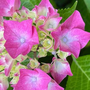 6月9日散歩道🚶♀️🚶🏻♂️快晴 栂緑道脇の紫陽花も朝陽を浴びて輝いている。ピンク色がいいなぁ💕