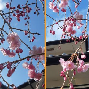 こんにちは👋😃午後2時30分くらいの、我が家の仙台枝下垂れ八重咲き桜🌸🌸🌸青空が、出て来ましたので、写してみました。昨年も、バチバチ、剪定されて、枝が、無くなる程で、これ以上は、切らないようにしたいです。可愛く綺麗に、咲いてくれました🌸🌸😊🙆。