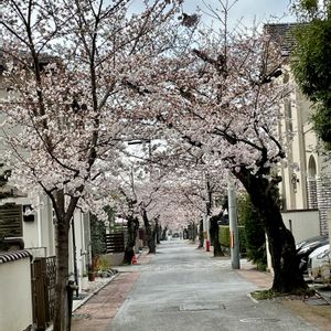 圧巻の桜並木🌸🌸🌸🌸🌸 住宅街の辻に立つと四方が桜のトンネル🥰