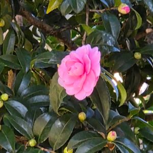 11月26日 風はありますが快晴☀️ 今日は都内品川区にある「蛇窪神社」へ参拝にいってきました 1枚目 神社の庭に咲いていた椿さん AI調べでは乙女椿とのこと 蛇窪神社には「白蛇弁財天社」があり 銭洗いをさせていただいてきました