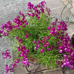 リナリアの花が一株でいっぱい咲いてきました💞 これは大寒波の後に花苗を買いに行った時にレジの所でどれでも持って行って良いですよと言われてかろうじて緑が残ってるこの子を選んで何の花ですかって聞いたらその子は知らず隣の店長らしき人に聞いて金魚草ですってどうみても金魚草の葉っぱには見えないけどと思いながらそのままポリポットに入れてたんですが可哀想になって鉢に移し育てたらモリモリになってこんな色で咲き出しました✿゚❀.(*´▽`*)❀.゚✿ 姫金魚草なんですね(>_<) 自分では選ばない色です。