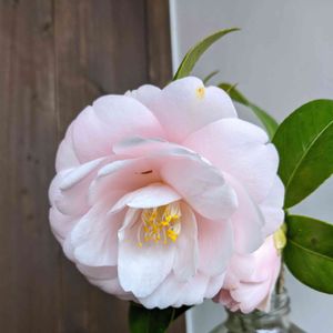 凄く優しい色の椿に出会いました❀( ⸝⸝•ᴗ•⸝⸝ )❀ こういうほのかなピンクも好きです🌸
