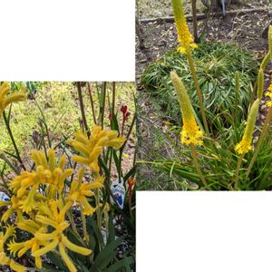 お出かけ先で珍しい花を見つけました。 カンガルーポーとブルビネラと木札に書いて有りました💛