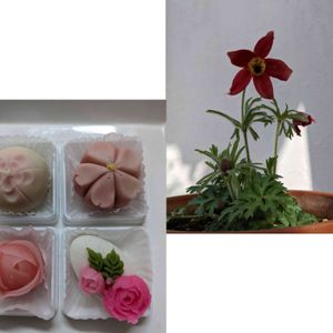 お隣さんが和菓子教室に行って可愛い和菓子をどうぞと🤗 そして我が家の翁草の花も咲いてきました〜♥️