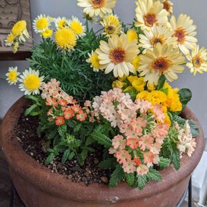 マーガレット ソレミオとオステオスペルマムを寄せ植えにしたらオステオスに押され気味で大きくなれません😅