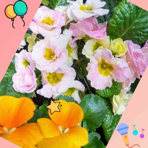 プリムラ・ジュリアン🤍 チョビット と パンジー🧡💛 暖かく なって ま🌼ん💞か🌼い.。*・゚゚ 🧚ョツチ。*・゚゚🧚♀️🧚♂️