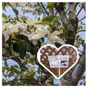園芸店で大きな木に白い花がいっぱい咲いてます🤍🤍🤍 木札が有ってオガタマ 深山含笑花(ミヤマガンショウカ)と書いてあり1m位の苗も売ってました🌳