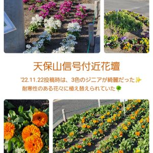 先日、ハローワークに用事があり、駐車場が遠いので、天保山の信号を利用した。 信号付近の花壇がいつも整備されている✨️ 花の年間計画表の掲示板があった。
