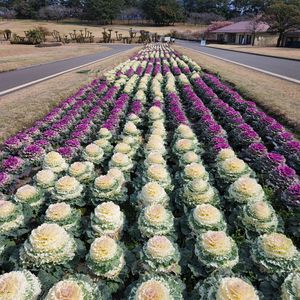 県立吉野公園内を入り口からしばらく歩く🚶と、葉牡丹のなが~い花壇が目に入ってきました。圧巻でした👀👍✨️💖 300以上?白い葉牡丹の方が成長が良くて高さがあった✨️
