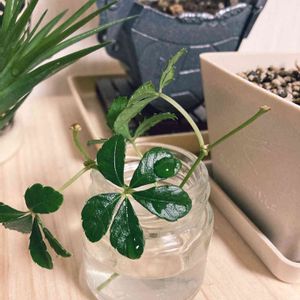 シュガーさんを水挿しで増やしてみようと思ってます😄🌱🌱 ほんとはもう少し長く切った方がいいみたいなのですが😝 気長に根が出るのを待ってみます😋