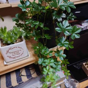 過去に何度も挑戦し、ダメにしてたシュガーバイン🌿 今年はなんとか根付いたみたい😁 葉裏から砂糖のような甘い香りの樹液を出す、とあるけど 葉っぱをひっくり返してくんくん嗅いでも 全然わかりません❌ だから、sugar(砂糖)vine(ツタ)らしいけど どのタイミングで香るのかなー🤔 ますます、くんくんしてしまうー😆