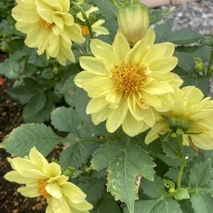 🌼 雨上がりの庭パト 🌼 おはようございます♪ 雨が上がったので庭パトへ 花壇の黄色いダリアが満開🌼 店先のミニ薔薇も元気いっぱい🌹 庭には雨に濡れた露草が咲き誇り 穏やかな日曜日を迎えました♪