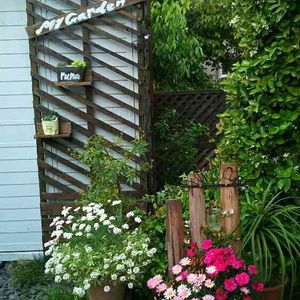 お花頑張って咲かしても 写真に撮ると倉庫があってガッカリなので ちょいとカバーしてみました。 どうかしら☺