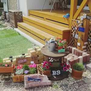 玄関先、横には花壇があります。