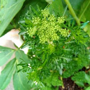 玄関前のプランターのパセリの花が咲きます!そこでクイズ(え!)何色の花が咲きますか?白?赤?黄?それとも夢のある虹色(笑)