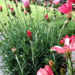 おはようございます(^^) ローダンセマムとラナンキュラスラックス😆 ラナンキュラスは花が小さくなって花色が濃くなったような〜💕もうすぐ終わりかな〜♪
