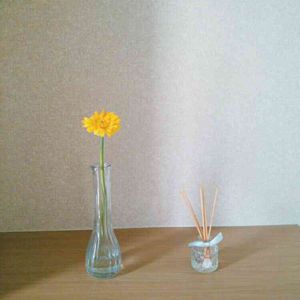 ダイソーで買った一輪挿しにガーベラ🌼花屋でいつもお手頃価格の花を買っては玄関に飾っています🌷幸運の黄色💛ヾ(o´∀`o)ノ