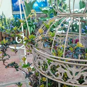 鳥かごから若葉が太陽求めて手を伸ばしてる( ´∀`)