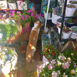 この右側の アイアン棚の下を 潜って行くと 猫扉🚪🐈が あります ٩(๑❛ᴗ❛๑)۶ (=^ェ^=)の 玄関 なんちゃって🤣