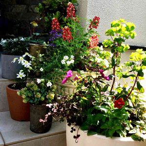 "今日のお庭" 今日はいい天気☀️ 家中の掃除をして気分もスッキリ‼︎ この時期は家庭訪問に備えて、普段より念入りに💦 バラバラに置いている鉢植えを集めて記念撮影📷✨ #ガーデニング #鉢植え寄せ #春のお庭