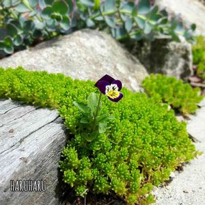 我が家のアプローチはいろんなグリーンがわさわさ♪今年はまだイワダレソウが生えそろってないので、去年の写真でコンテスト投稿です♪