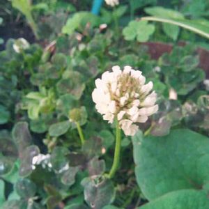 四葉のクローバーから花が咲きましたが、四葉は虫に食べられ三つ葉になってます(笑)