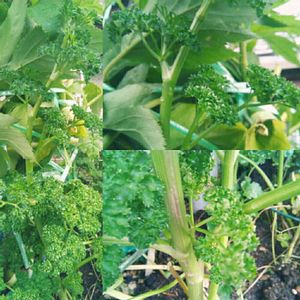 うちの玄関前の発泡スチロールのパセリ!いつも明日葉の下にいたので気がつきませんでしたが春菊と同じ構造です!!背丈は50㌢ほどで幹(直径3㌢)から枝葉が沢山出てます(笑)