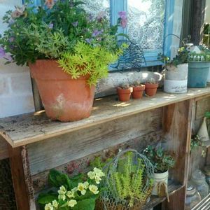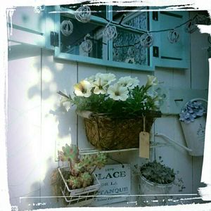 小屋の入口に新しい寄せ植えを作ってみました。 長いブリキの器を金バサミで切れ目を 入れてヘデラとか植え込んでみました。 Secet Open Garden Version