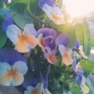おはよ〜早すぎ(笑) 我が家の玄関の絹さやとビオラと朝日のコラボ!